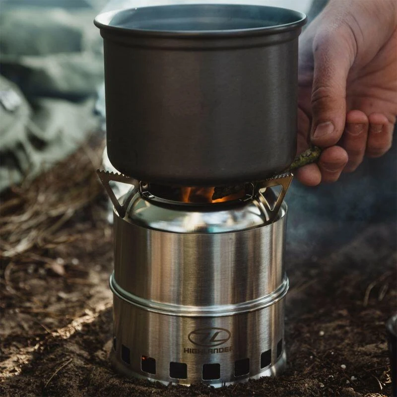 Petit poêle à bois léger pour le camping et le randonnée, conçu pour brûler plusieurs combustibles comme le charbon, le bois, les cubes combustibles solides, l’alcool, etc.