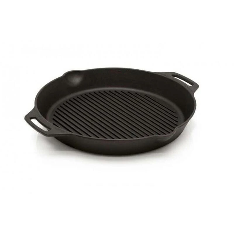 Grille en fonte Petromax magnifique avec poignées. Sa surface est nervurée. Diamètre de 35 cm. Poids de 4,65 kg.