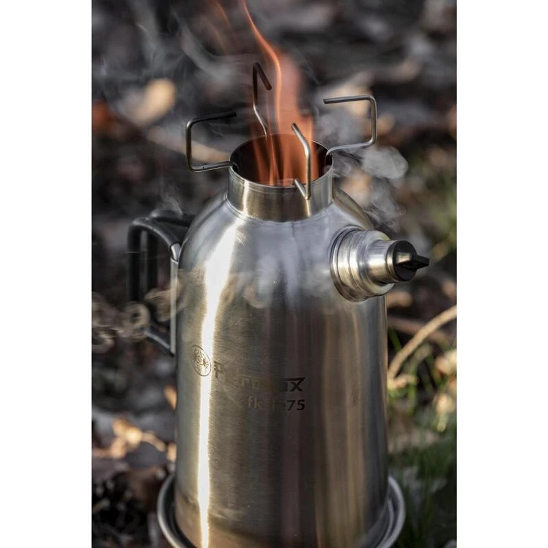 Faites bouillir l’eau rapidement et facilement avec le chaudron à feu double paroi Petromax. Pendant que le feu crépite dans la cuve, la chaleur monte vers l’intérieur de la casserole. L’effet de