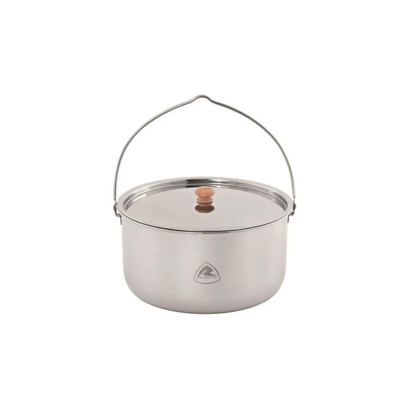 Une magnifique poêle en acier inoxydable robuste avec un manche spécial équipé d’un crochet. Le couvercle est doté d’un manche en bois résistant à la chaleur.