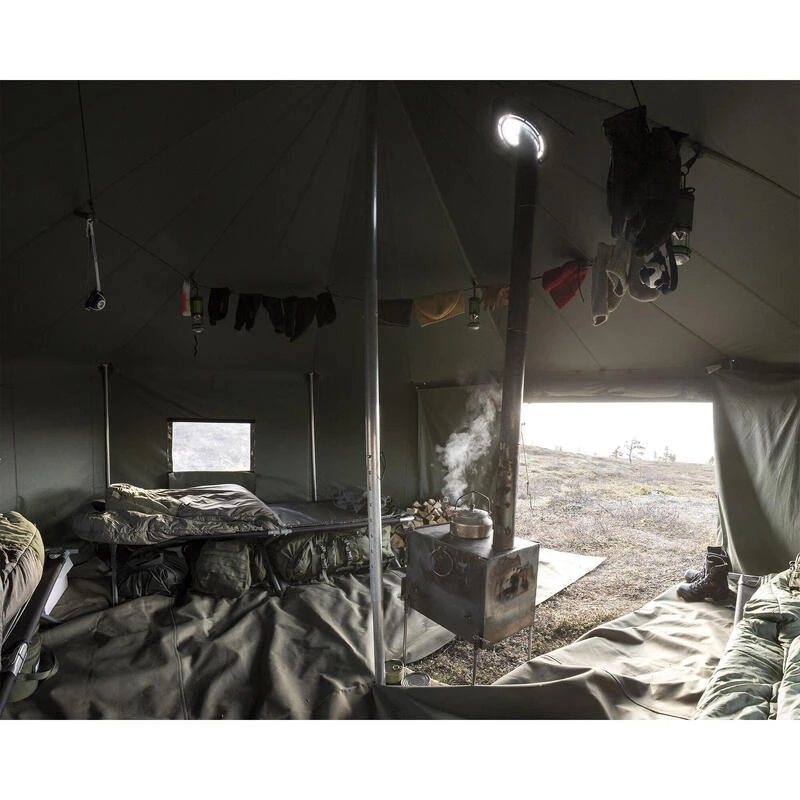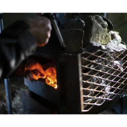 Le poêle Savotta réchauffe facilement les tentes et peut également servir de poêle à sauna dans la petite tente à sauna Savotta avec son support en pierre. Parfait pour cuisiner aussi !